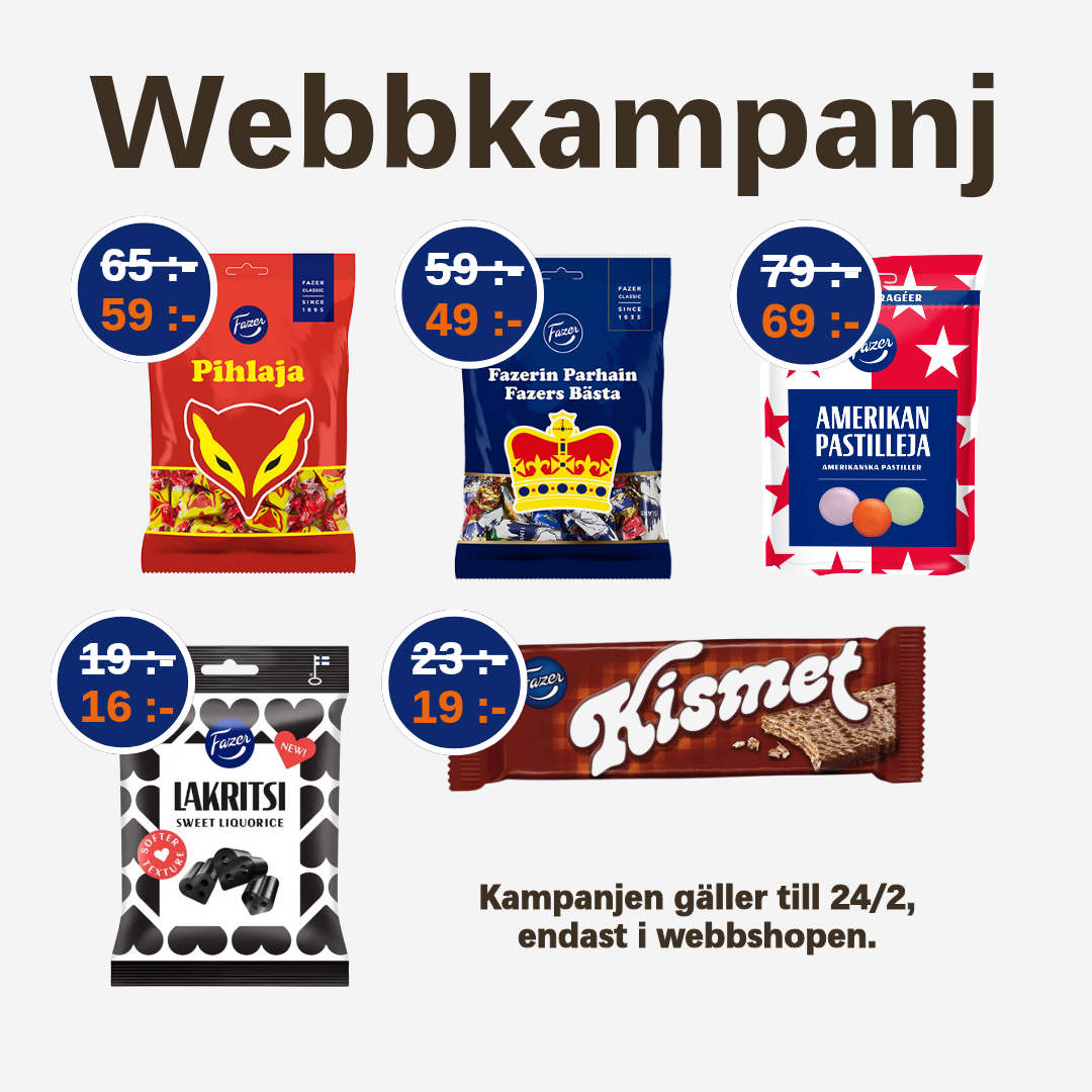 Välj dina favoriter, blanda fritt mellan olika sorter och fyll frysen med finska fikaklassiker – bakat med samma omsorg som hemma i Finland, fast lite närmare dig.