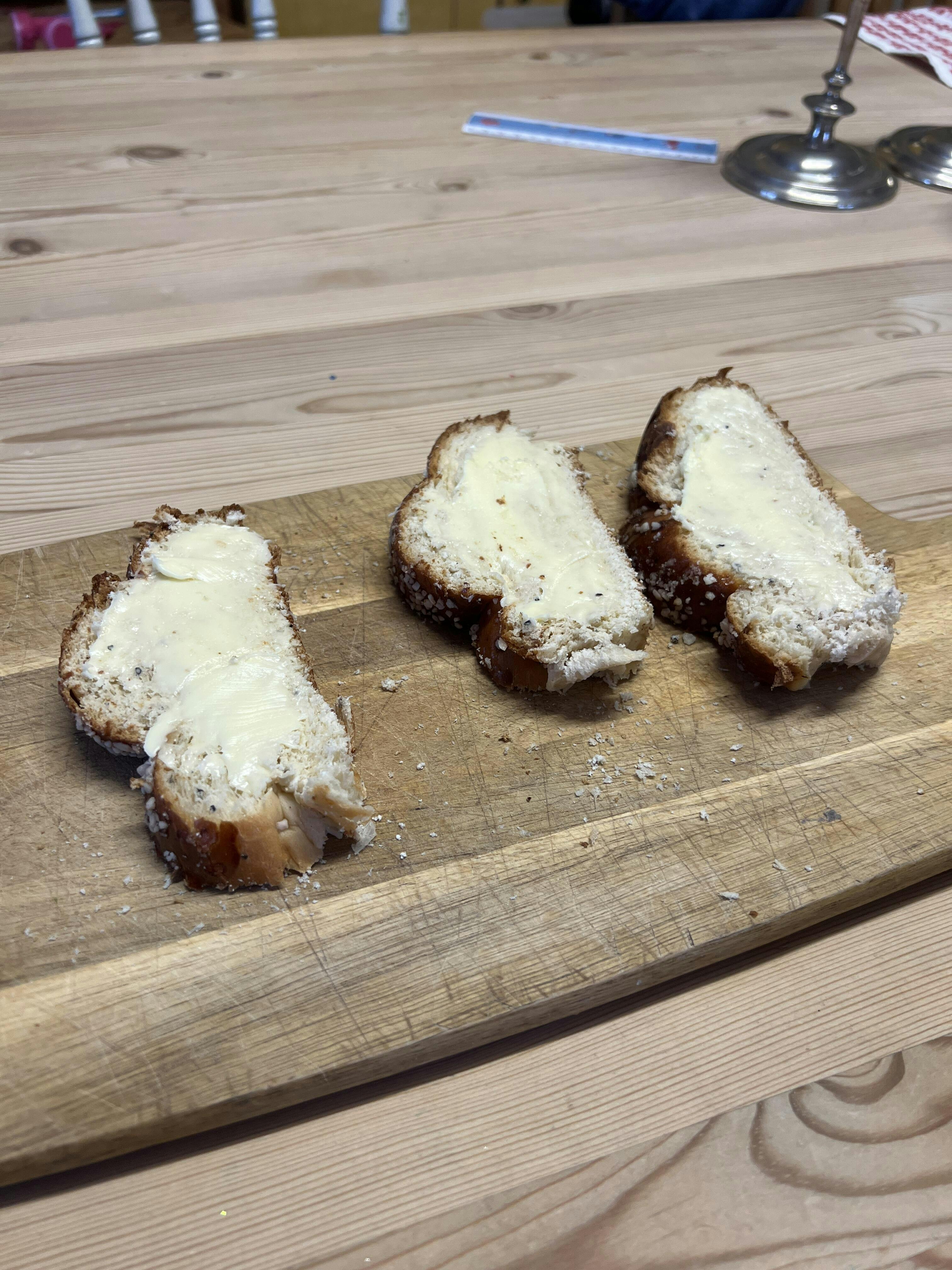 Pidän enemmän vaaleaksi paistetuista pullista ja pitkoista. Pullat ok mutta pitko oli mielestäni ollut aivan liian kauan uunissa joten se oli jo seuraavana päivänä kuiva. Eli taytyy tehdä köyhiä ritareita.