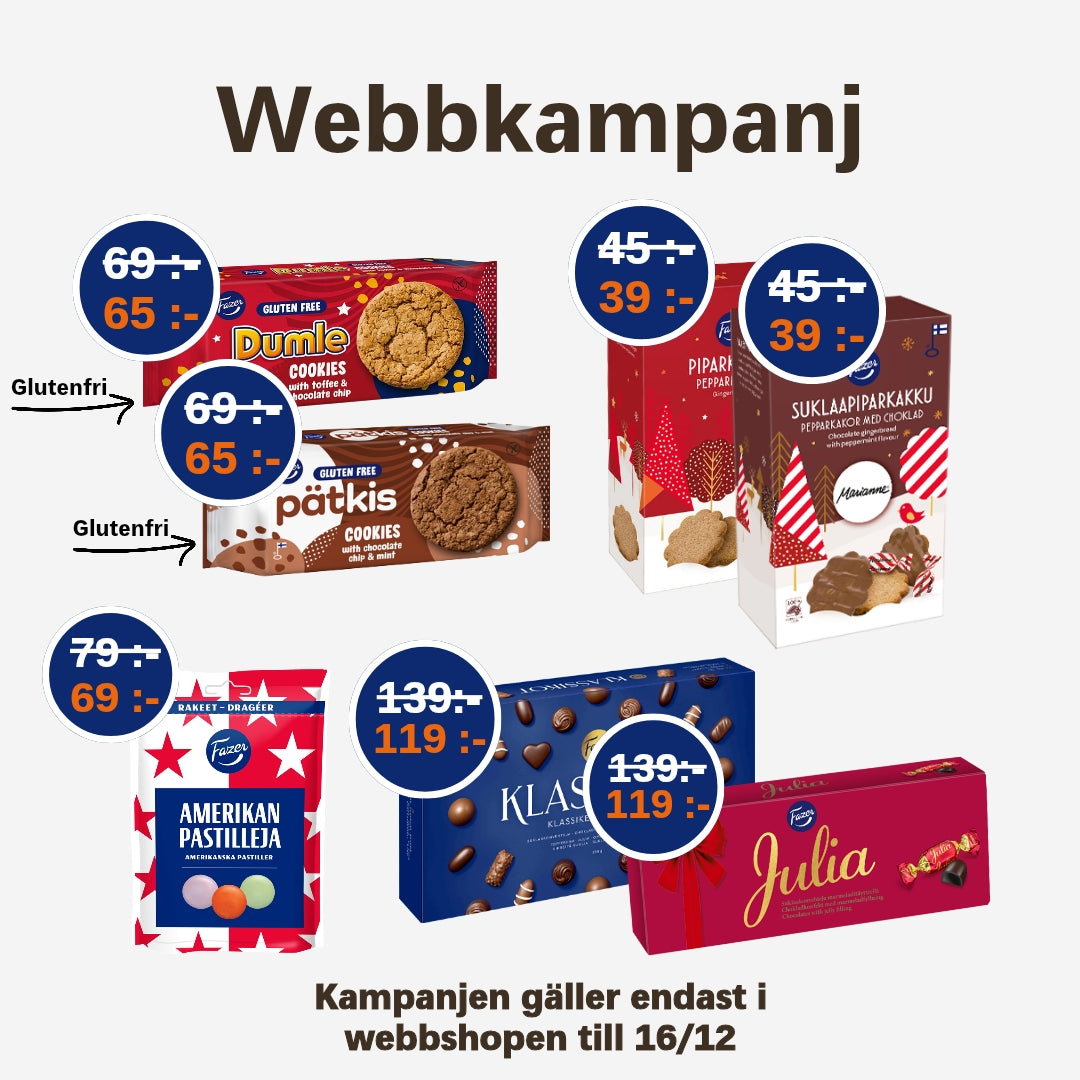 Här hittar du våra aktuella kampanjer och erbjudanden – utvalda finska favoriter till extra bra priser. Vi samlar alla pågående rabatter, paket och säsongskampanjer på ett och samma ställe så att du enkelt kan göra ett fynd.